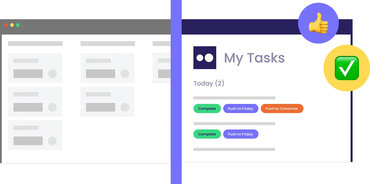 | Automation | Tasks come with automatic reminders and status checks, no manual config needed | Offers powerful automations, but requires setup, rules configuration, ongoing maintenance (teams rarely do this well) |